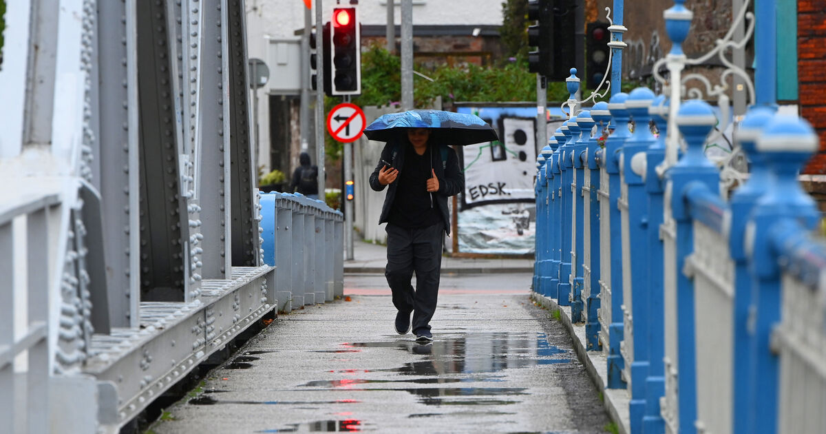 Storm Amy is on the way. A Pedestrian holding an umbrella crosses Brian Boru bridge over the River Lee, Cork City as weather conditions begin to deteriorate on Thursday afternoon. Picture: Larry Cummins