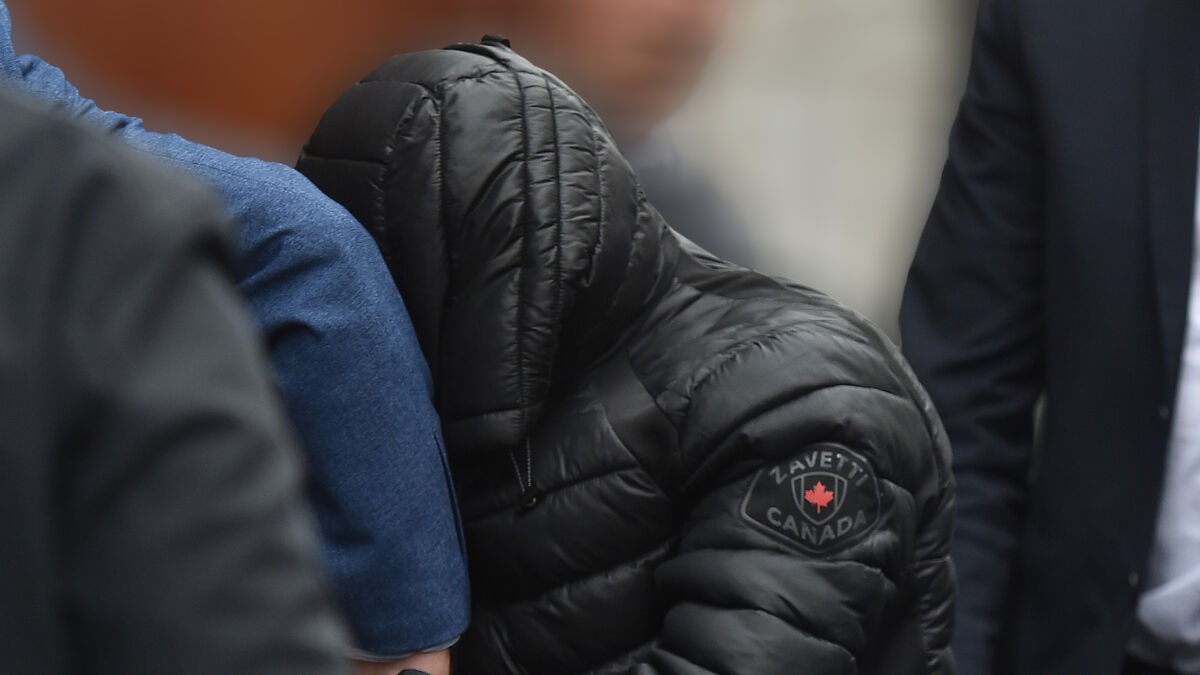 Alex Deady, his face covered, is brought to Mallow Courthouse, Co Cork, where he was charged with murder. Picture: Dan Linehan.