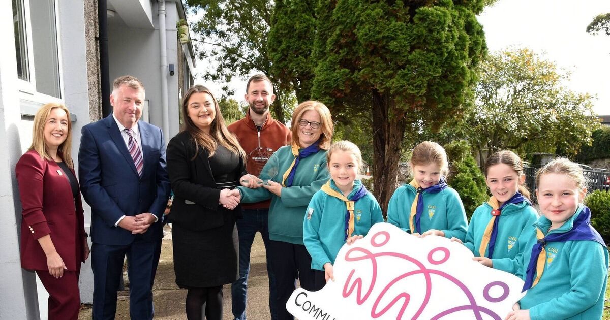 Norma Lombard, leader of the St Theresa’s Catholic Girl Guides of Ireland Troop, Passage West, receives the Cork International Hotel/’Carrigdhoun’ Newspaper Community Spirit Award from hotel deputy manager Edel Kavanagh, with Cllr Una McCarthy, ‘Carrigdhoun’ managing editor Vincent O’Donovan, Cllr Eoghan Fahy, and Girl Guides Freya O’Connell, Zara Foley, Evie O’Sullivan, and Meabh O’Connor.