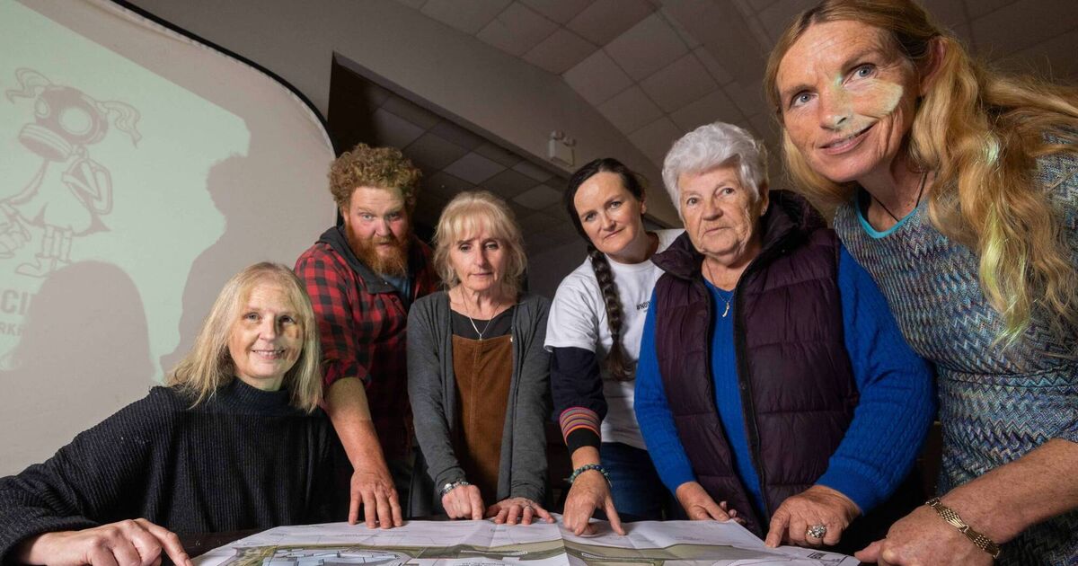 Members of CHASE (Cork Harbour Alliance for a Safe Environment), including Linda Fitzpatrick, Denis Cronin, Mary O’Leary, Sue Walsh, Gertie O’Driscoll and Marcia Dalton, review the latest plans. Picture: Joleen Cronin.