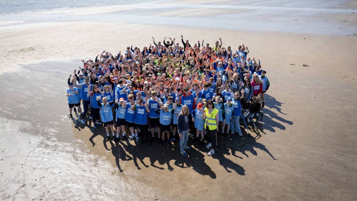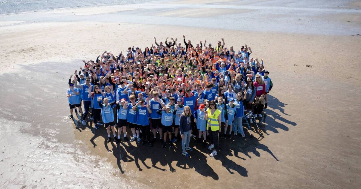 Nearly 200 primary pupils with Clean Coasts Ballynamona as part of the Big Little Beach Clean 2025.