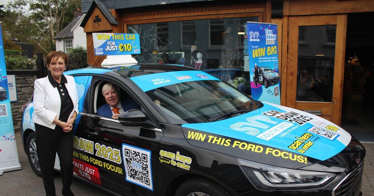 Mary Frances Behan, Regional President of SVP South-West, pictured with campaign ambassador Francis Brennan launching the SVP Annual Car Draw 2025 as the charity reports a 20% rise in calls for help across the region.