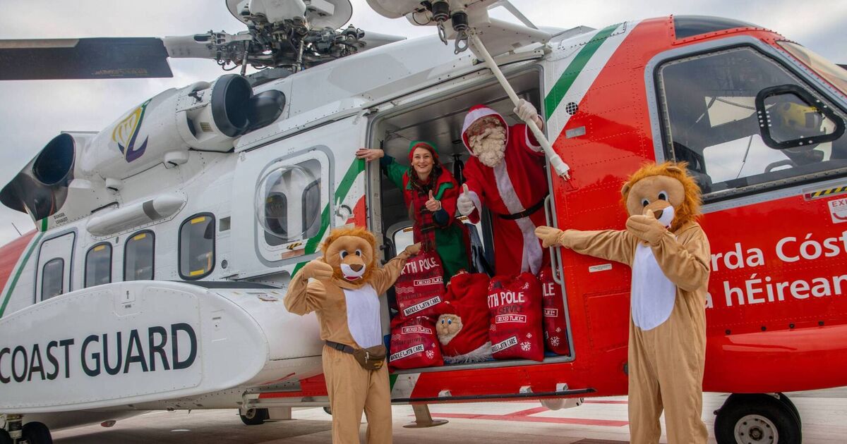 Santa arrived by Coast Guard helicopter to Cork University Hospital to deliver presents to with his Lions Club helpers and 'elf' Monika Seidel from the CUH charity. Picture: Colm Lougheed.