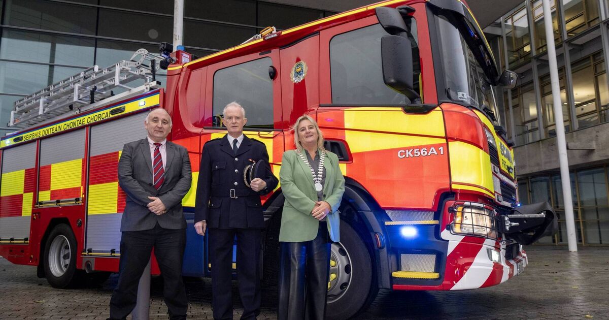At County Hall with one of the new vehicles were county mayor Cllr Mary Linehan Foley, along with acting divisional manager Keith Jones, Cork County Council and chief fire officer, Andrew Macilwraith. Picture: Brian Lougheed