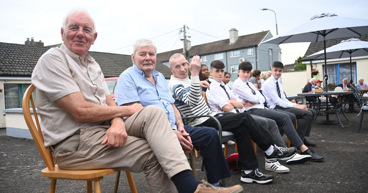 Charlie McAllister, Midleton with Dan Twomey and Mike Sexton at the Summer Garden Party for locals of SHARE at Cnoc Mhuire, Fair Street, off Cathedral Road. Organised by Paddy O'Brien. Pic Larry Cummins.