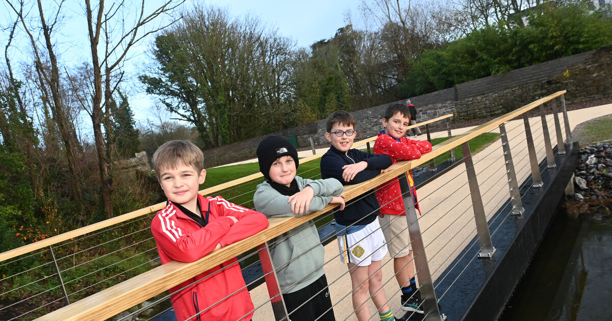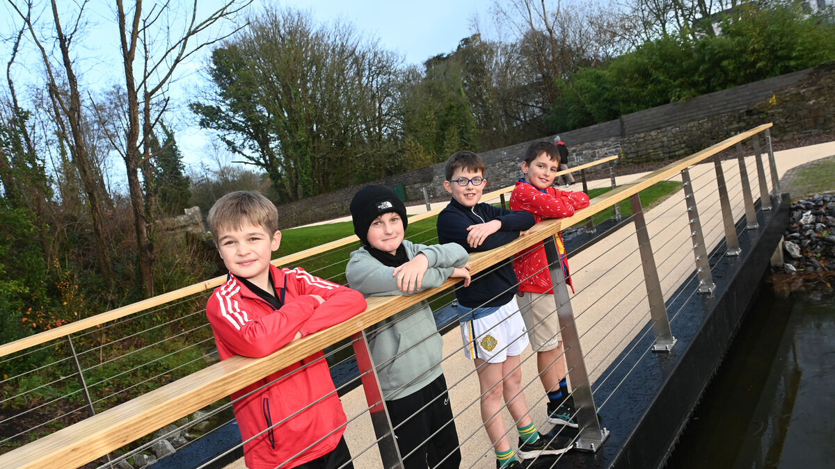 Friends Ralph Horgan, Edwin Prusinowski, Eoin O'Loinsigh and Ronan Leonard from Blackrock on one of the new pedestrian bridges at the Atlantic Pond.. Picture: Larry Cummins