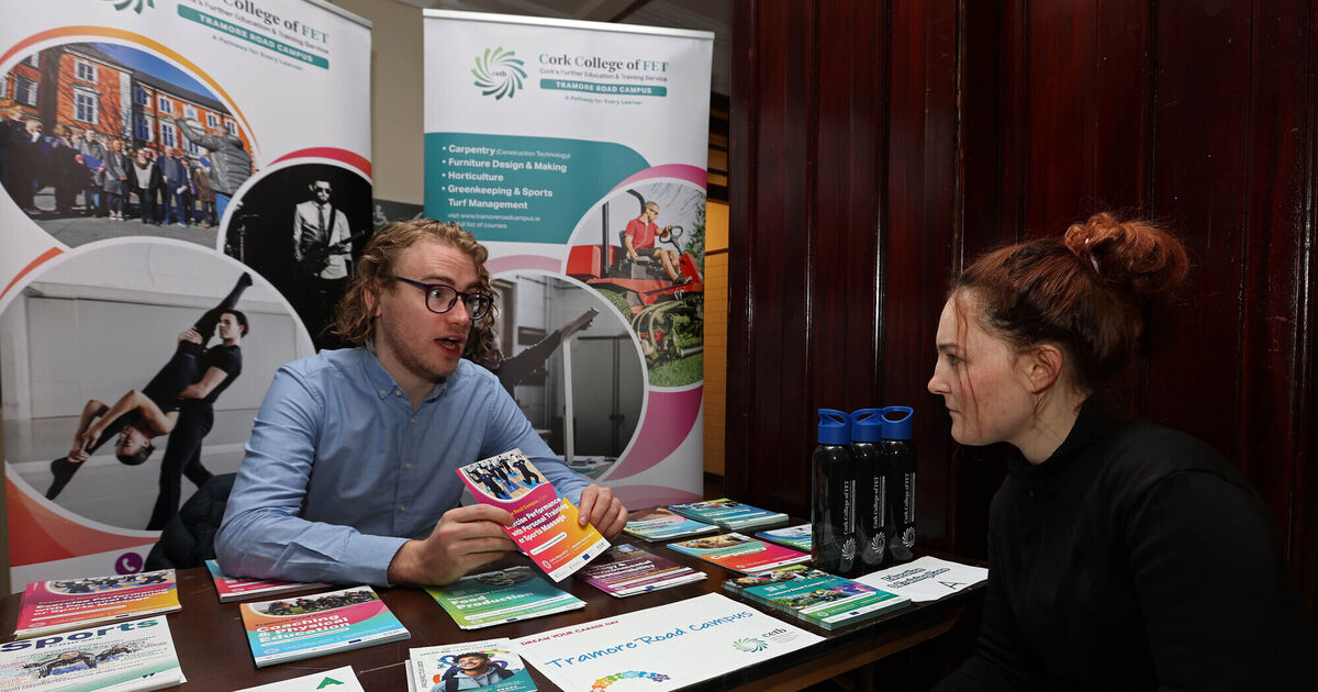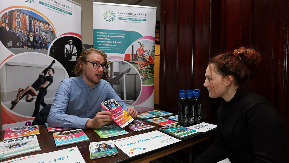 Conor Arkins, Cork College of FET Tramore Road Campus with Nilay Candur, Dean Street Youthreach, during the Dream Your Career Day, organised by Cork ETB, a collaborative effort between Youthreach Cork, Community Training Centres and DSP, at the Concert Hall, City Hall, Cork.