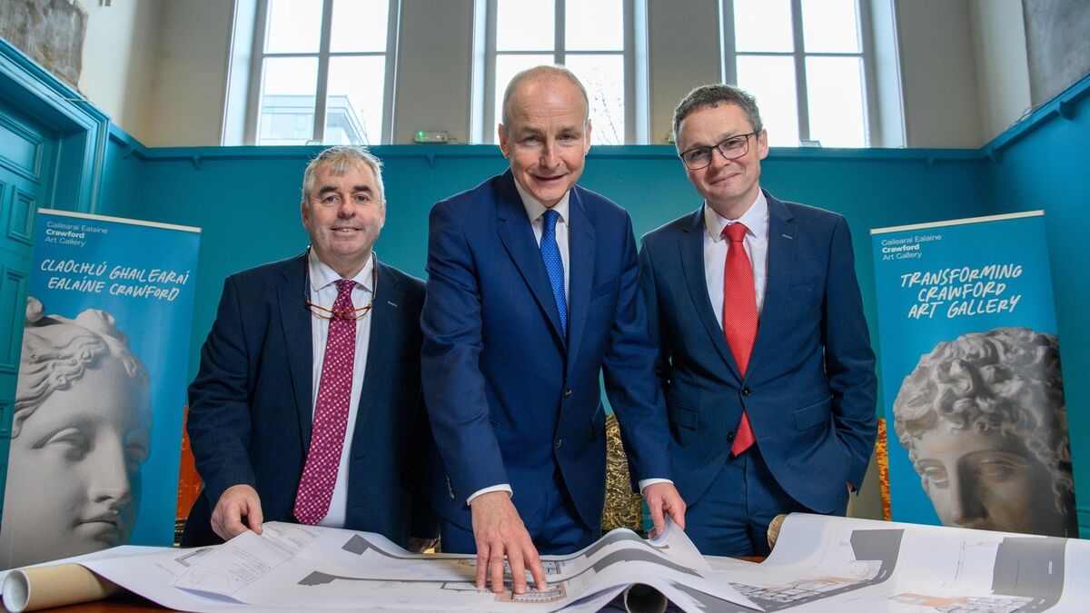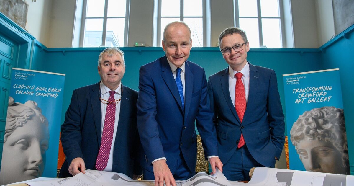 Minister of state Kevin ‘Boxer’ Moran, Taoiseach Micheál Martin and minister Patrick O’Donovan at at the launch of the Crawford Art Gallery Redevelopment Project in Cork last week, where the Taoiseach described the proposed new travel regulations as ‘unworkable’.