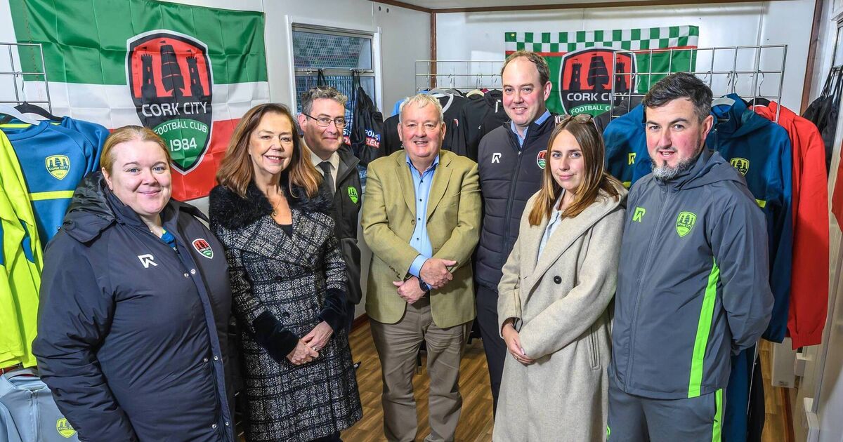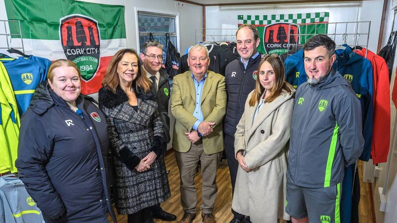 Erika Ní Thuama, Community & Academy Coordinator, Cork City FC; Collette Lane, Sales & Hire Manager Masterkabin; Anthony O'Sullivan, Commercial Manager, Cork City FC; Malachy Menton, Group Chairman, Eco Mod Group; Éanna Buckley, Chief Operations Officer, Cork City FC; Karolina Perednevaite, Sales & Hire Coordinator, Masterkabin; Craig Robinson, Community Coaching Manager & Women's Head of Academy, Cork City FC. Picture: Doug Minihane.
