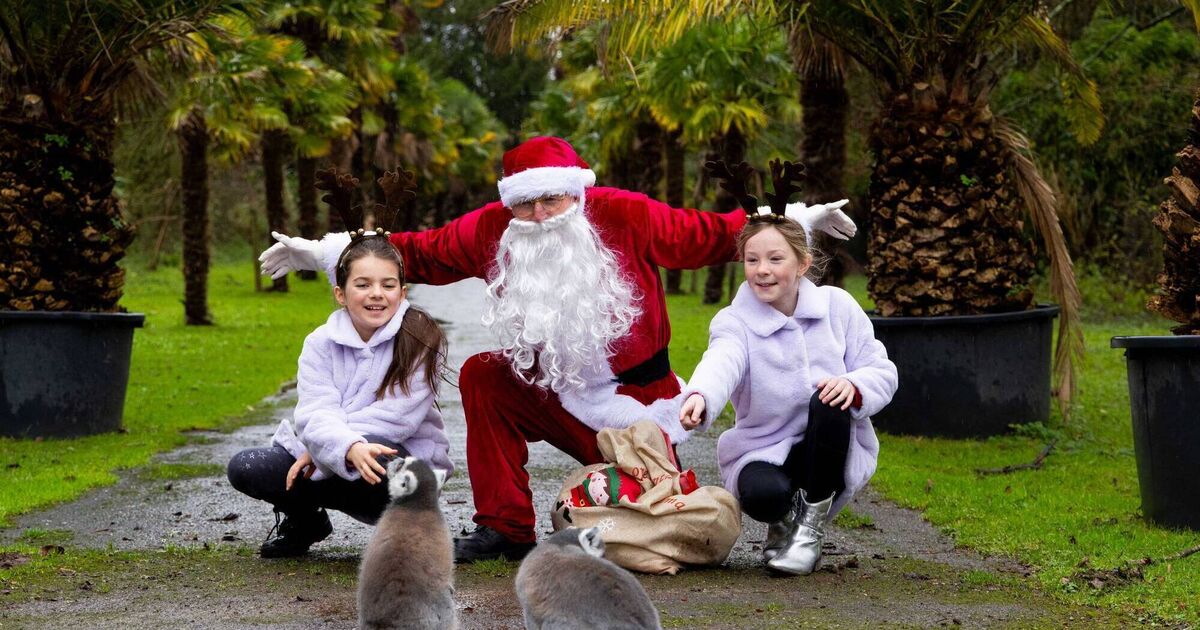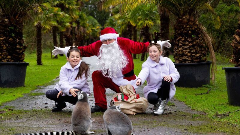 Local children Astrid Quin and Muireann Howe, with Santa, as Fota Wildlife Park officially reopened to visitors following a 10‑week closure due to avian influenza. Picture: Michael O'Sullivan / OSM PHOTO