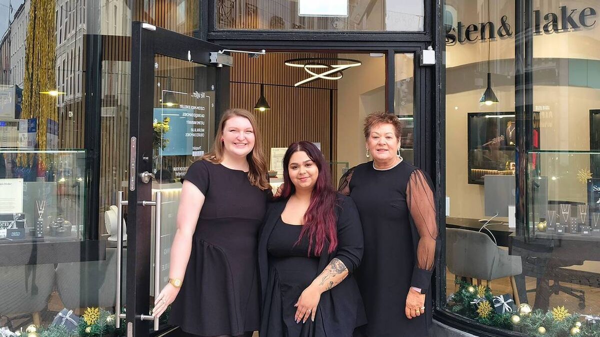 Jessica Glavin, Natalee Monaghan, and Christine Twohig of Austen & Blake jewellery store mark the company’s first year in business in Cork city centre just before Christmas.