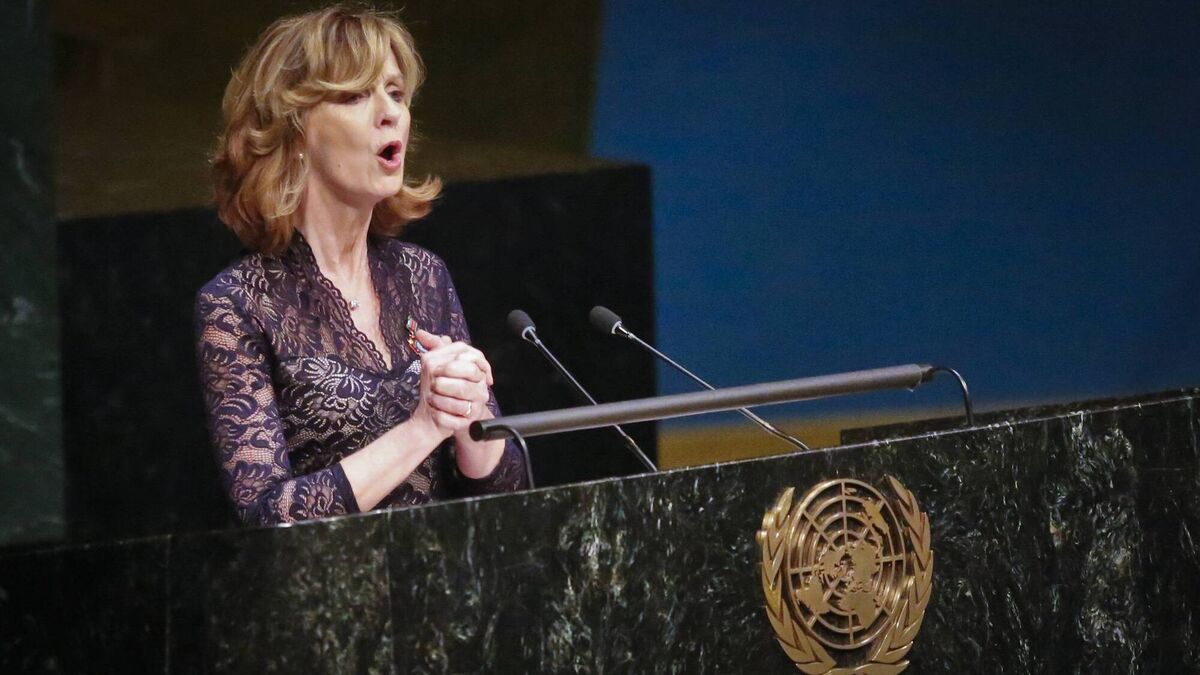 Chernobyl Children International founder Adi Roche, speaking on behalf of Belarus, address a special General Assembly meeting in observance of the 30th anniversary of the Chernobyl nuclear disaster in 2016 at U.N. headquarters. Photo: Bebeto Matthews