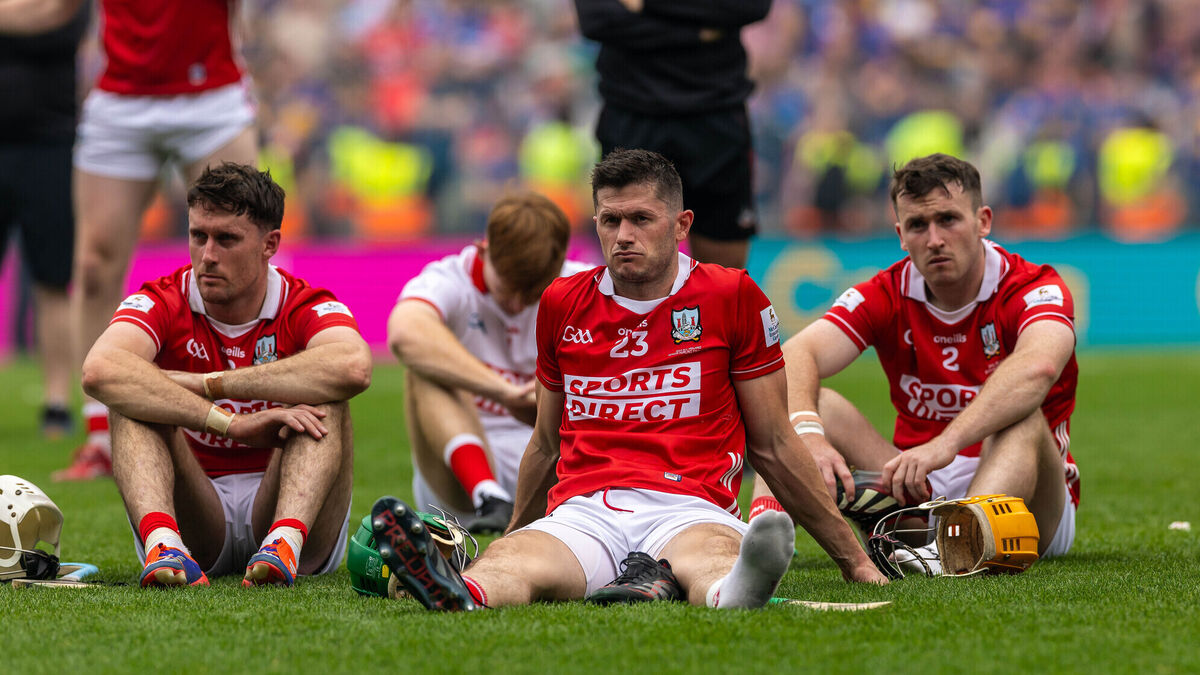 Cork’s Seamus Harnedy and teammates dejected after the losing the All-Ireland Senior Hurling Final. Picture: INPHO/Morgan Treacy