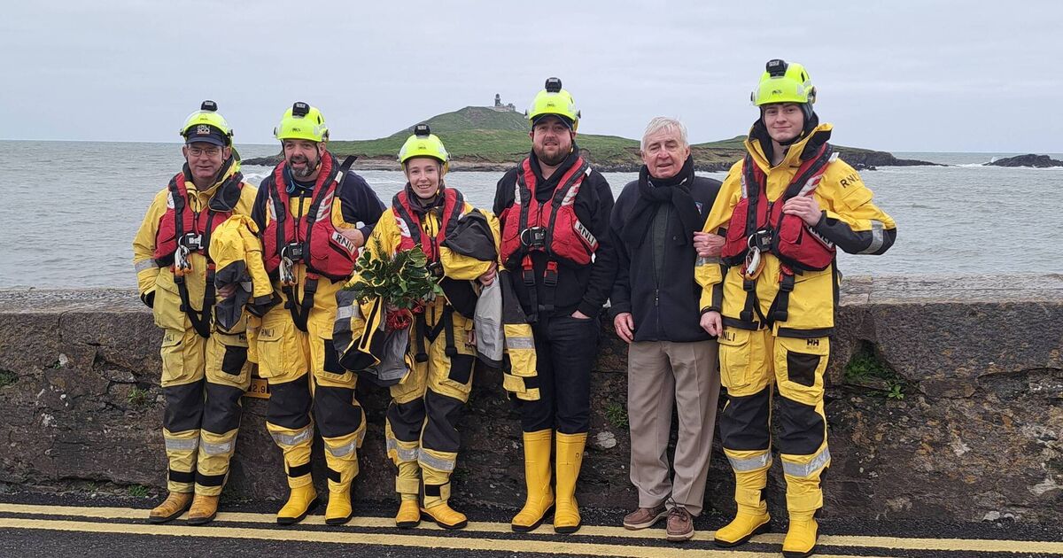 Tom MacSweeney with the Ballycotton Lifeboat crew, preparing to commemorate those lost at sea.