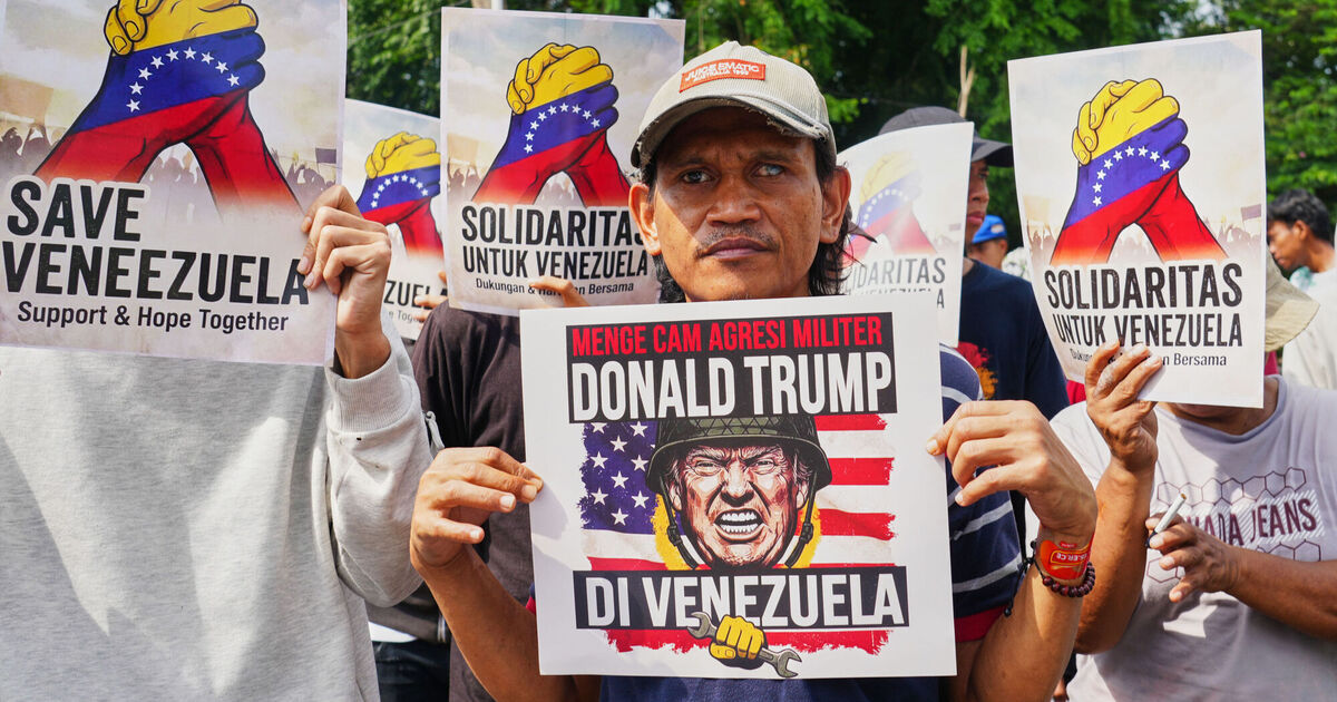 A protester holds a placard at a rally outside the US Embassy in Jakarta, Indonesia, denouncing the US capture of Venezuelan president Nicolas Maduro. A protest rally against the US operation in Venezuela is being organised for Cork this Saturday.