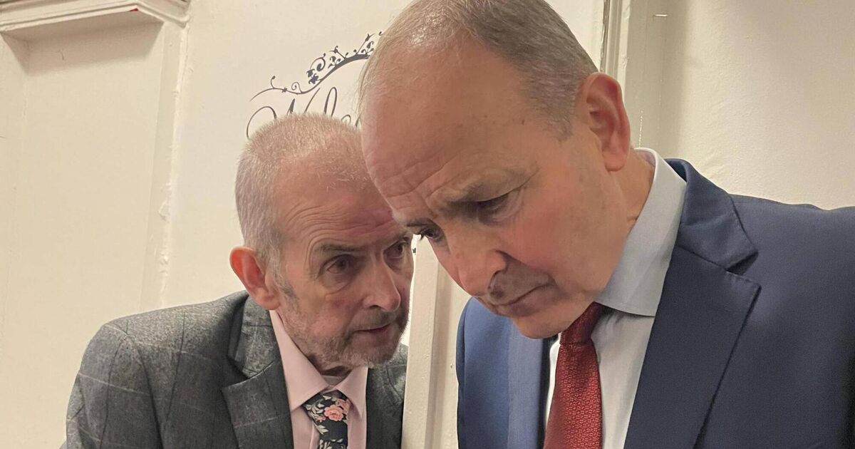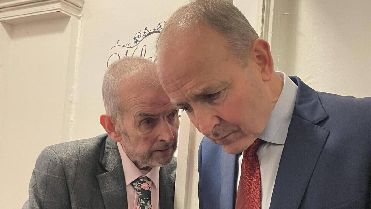 The late Cork Life Centre director Don O'Leary deep in conversation with Taoiseach Micheál Martin, following a 2022 visit by the Taoiseach to the northside alternative education facility. Picture: Donal O'Keeffe.