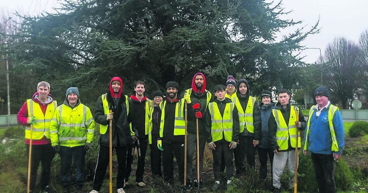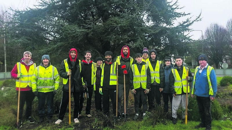 Members of the Ballincollig Basketball Club Men's SuperLeague team volunteering with Ballincollig Tidy Towns. Picture: Vitaliy Makhnanov
