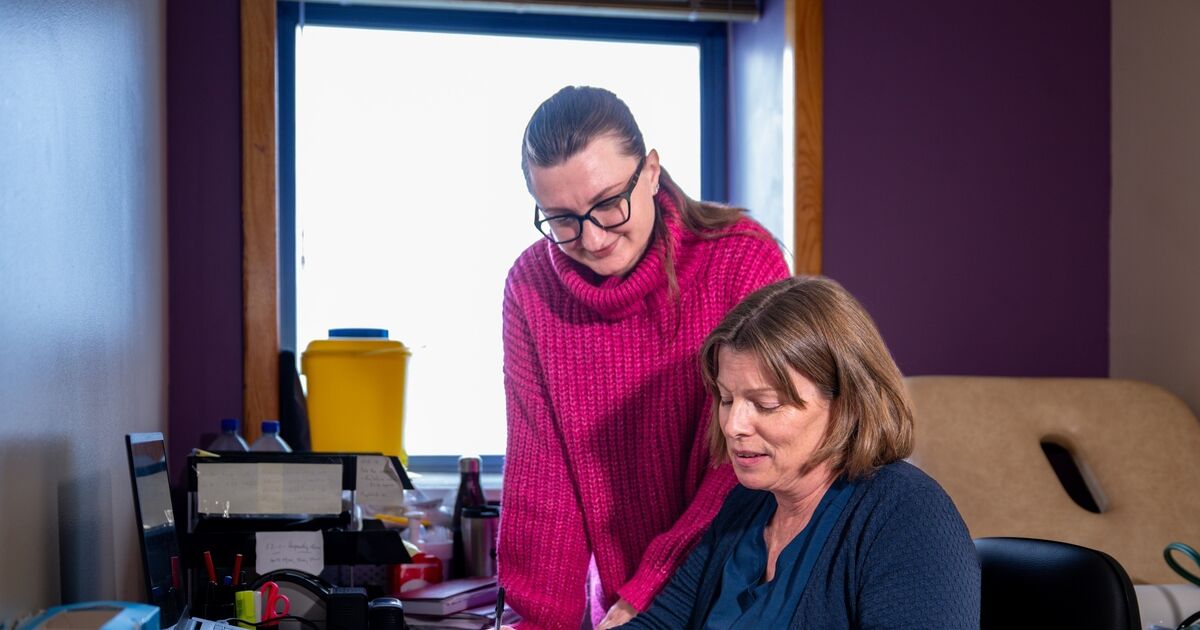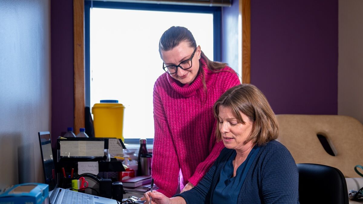 Sarah Ann Brenner, seated, and Dr Olena Holub working together in the clinic. Picture: Chani Anderson.