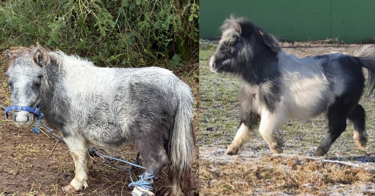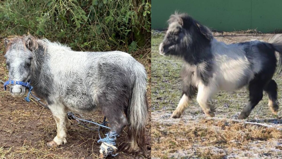 Ellie, left, before she was rescued by My Lovely Horse and, right, after.
