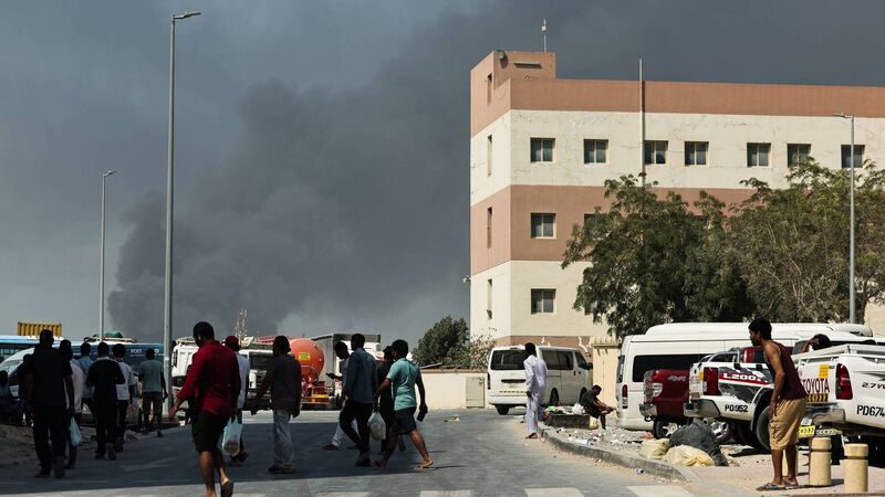 People look at smoke rising from the port of Jebel Ali after a reported Iranian strike in Dubai on March 1. (Picture: Fadel SENNA / AFP via Getty Images)