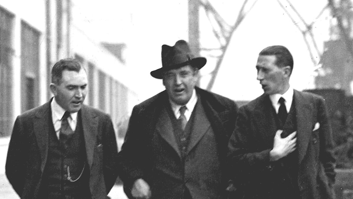 John McCormack, centre, at the Ford motor factory on one of his visits to Cork. He's pictured with American pianist Edwin Schneider, and works manager EL Clarke. Picture: Irish Examiner Archive