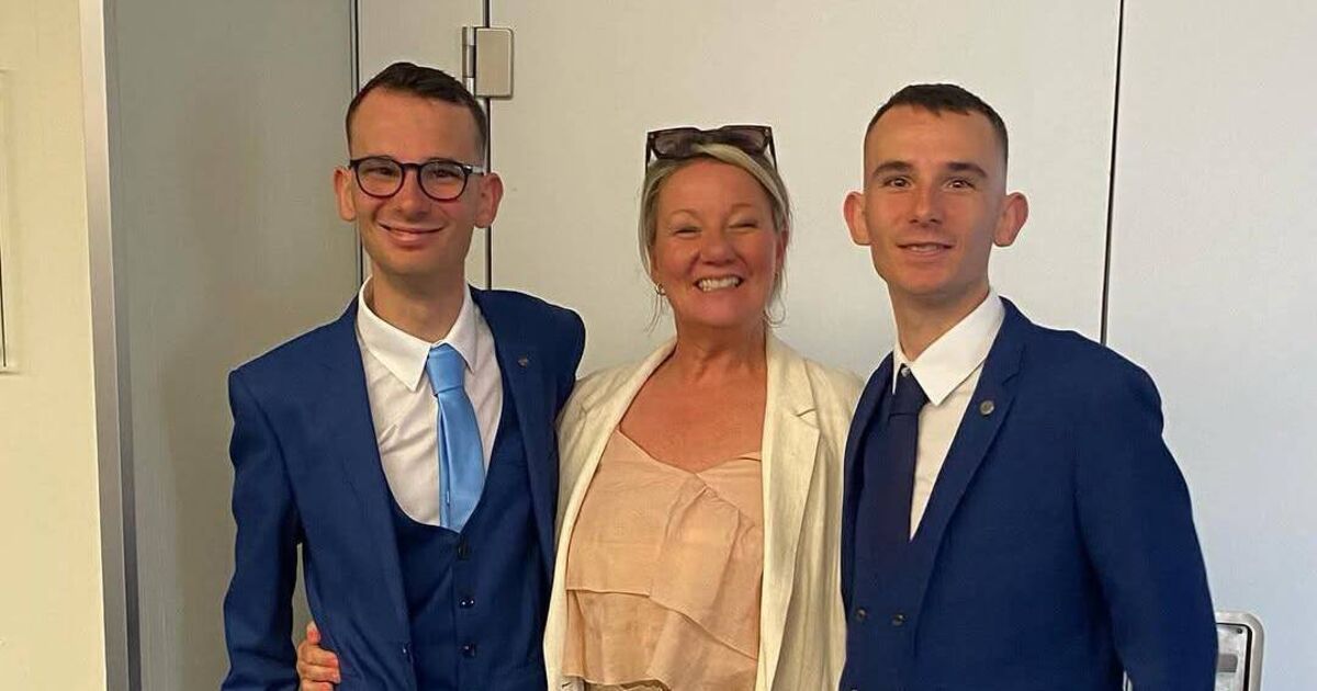 Sinead McGrath with her 23-year-old twin sons Lee and Alex, both of whom have intellectual disabilities.