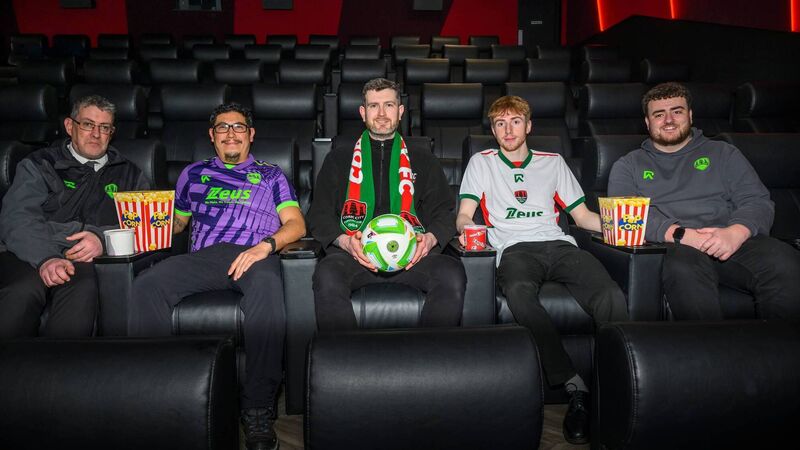 Cork City’s commercial manager Anthony O’Sullivan with Marco Soria Soto, the Arc Cinema’s David Coleman, Ben Hurley, and Aaron Howey at the renewal of the arrangement where fans can watch away games at the cinema.