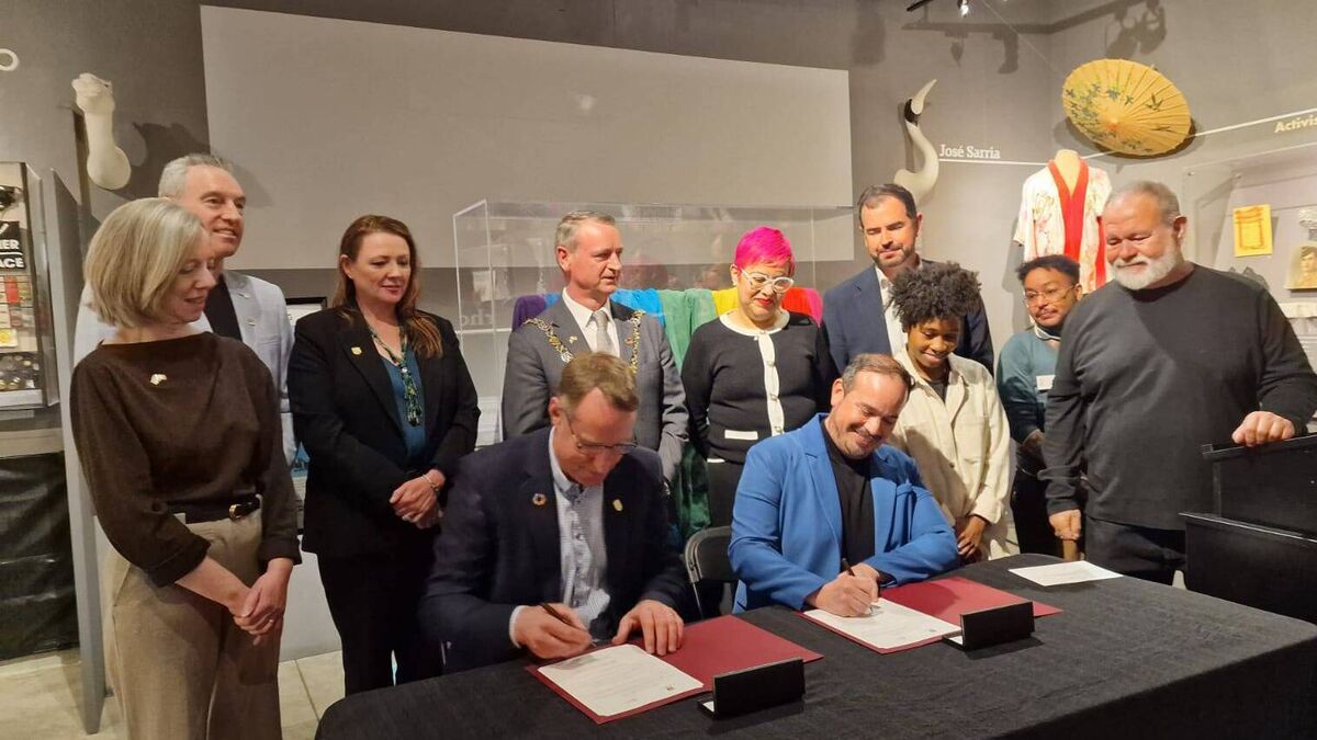 Lord Mayor Fergal Dennehy overseeing the signing of the agreement to bring the rainbow flag to Cork.