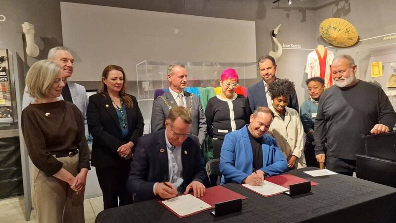 The GLBT Historical Society in San Francisco recently hosted the Lord Mayor of Cork, Fergal Dennehy, to sign an agreement to loan the original 'Rainbow flag' for an exhibition at Cork Public Museum later this year.
