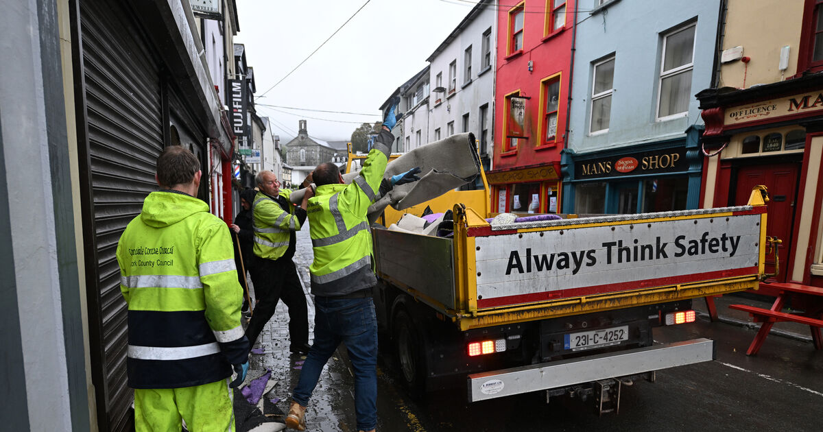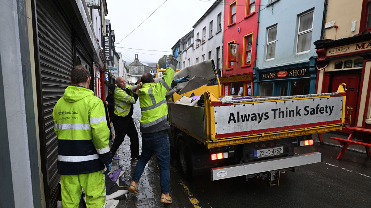 Council workers cleaning up after flooding on New Street, Bantry. File picture: Dan Linehan