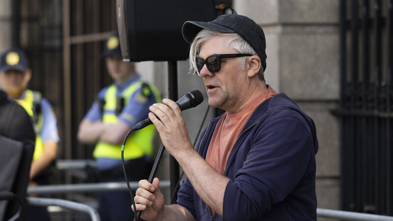 Cork-based singer-songwriter Martin Leahy marking performing 'Everyone Deserves a Home' outside Leinster House. File picture: Sam Boal/Collins