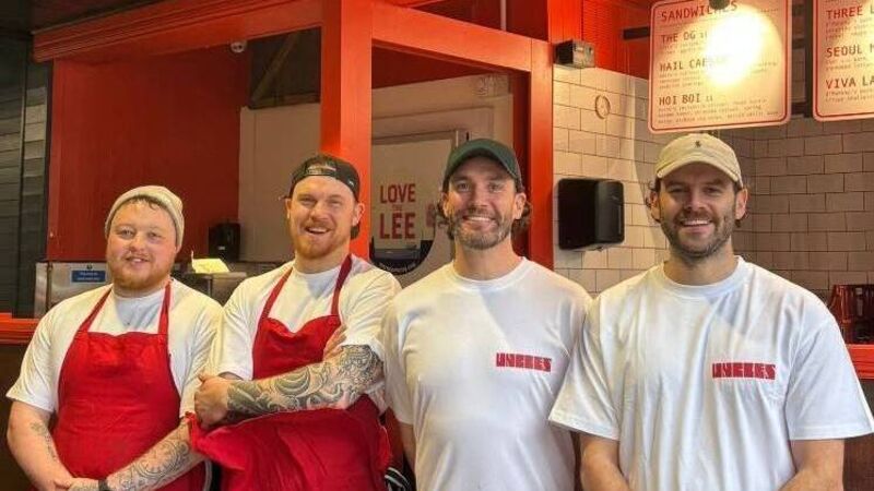 The crew at ‘Uncles’, the English Market’s newest sandwich shop, Daniel Kenneally, Marcas Hendry, Ciarán O’Regan, and Colin Ryan. Picture: Shane O'Sullivan.