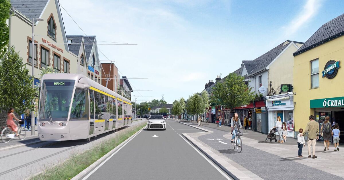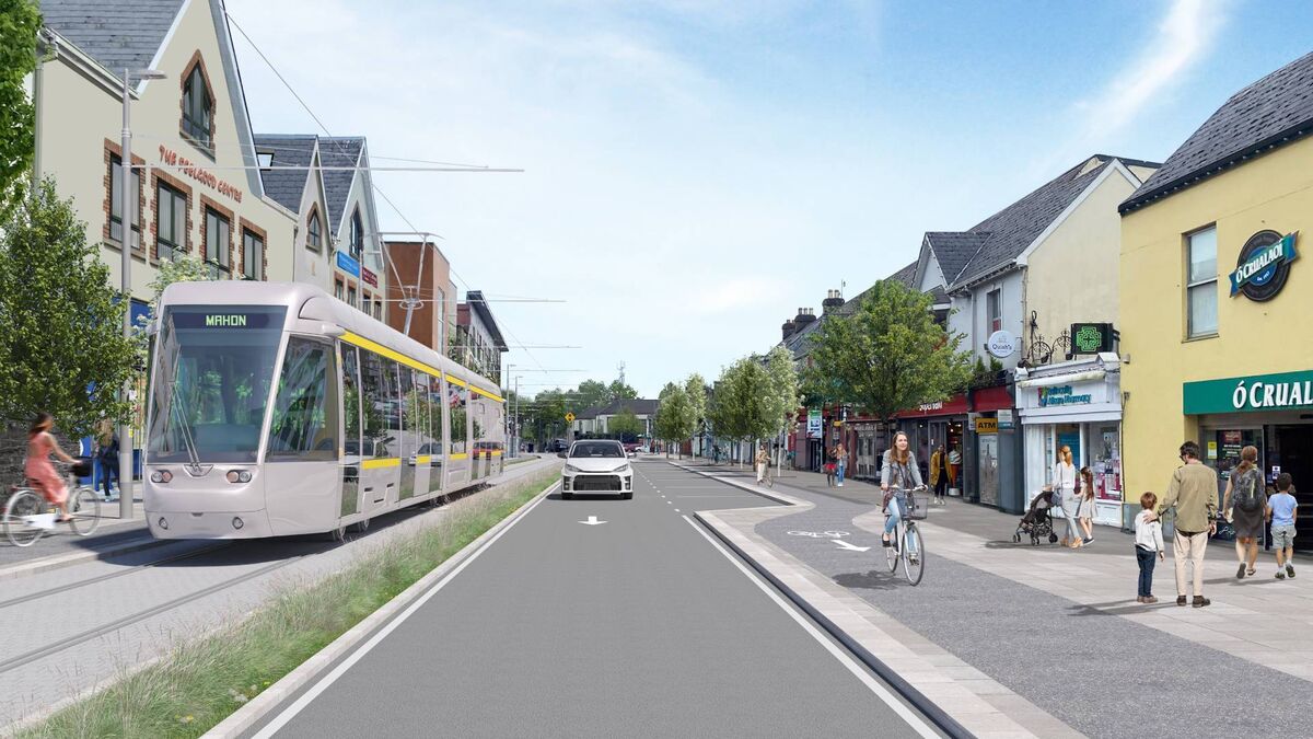 Indicative view of Luas Cork through Main Street Ballincollig. Photo: LuasCork.ie