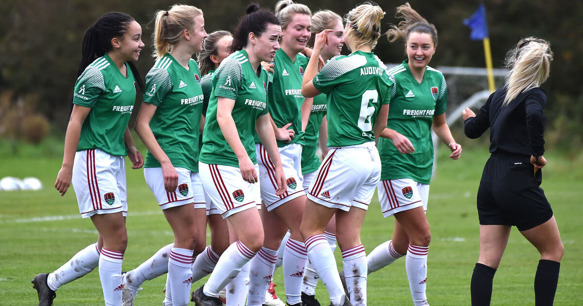 A delighted Saoirse Noonan celebrates her opening goal with her Cork City team mates against Treaty United during their Womens FAI cup semi-final at Curraheen, Cork. Picture Dan Linehan