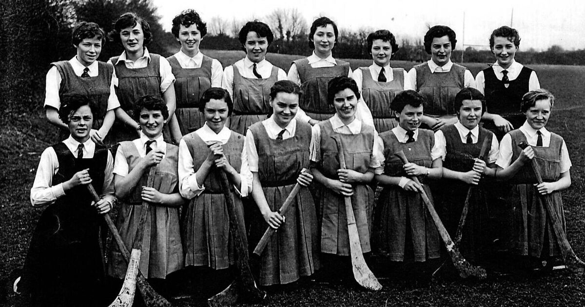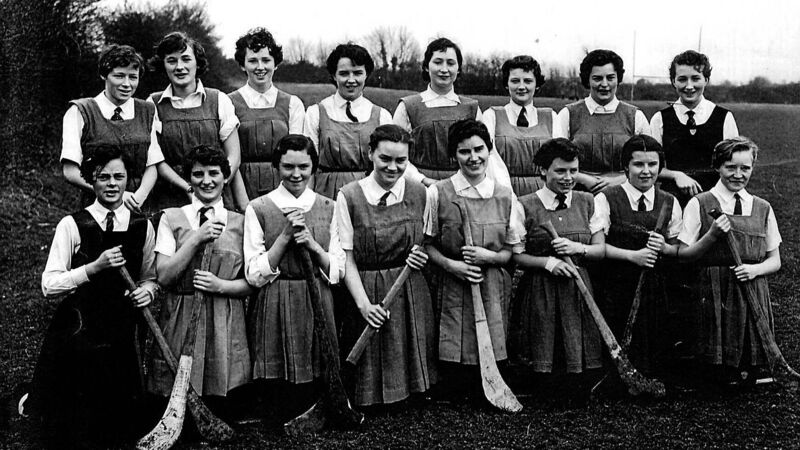 The old Aloysious camogie team which defeated Mourneabbey in the county junior championship at Church Road on March 3, 1957. The final score was 5-1 to 3-1. Front from left: Pauline Hegarty, Rena Manley, Helen Sexton, Mary Moran, Lily O’Grady (captain), Carmel O’Connell, Mary Clancy, Maura Fitzgerald. Back from left: Eileen Good, Betty Hegarty, Enda Wiley, Helen Horgan, Dymptna Langford, Phil Joyce, Carmel Joyce, Carmel O’Sullivan.