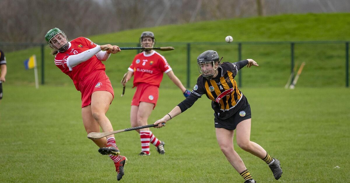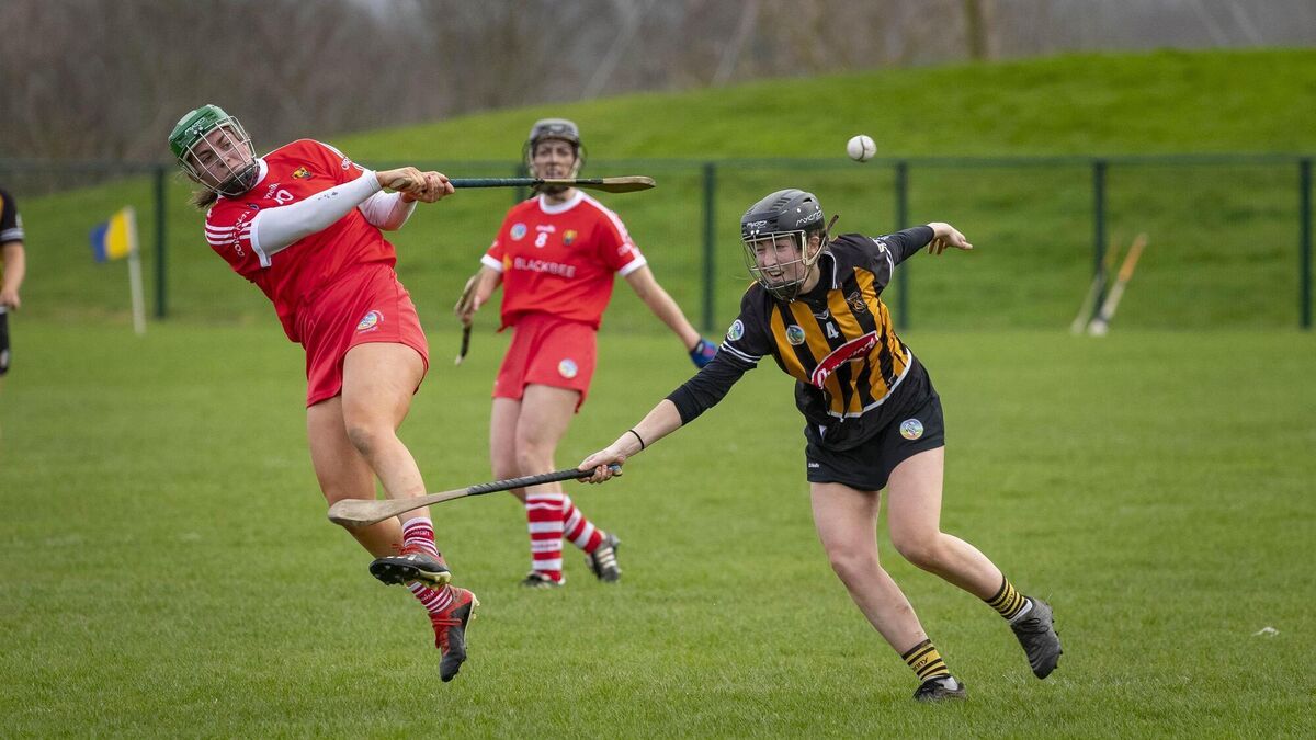 Cork's Moira Barrett and Kilkenny's Aobha O'Gorman in a recent Division 2 camogie league outing. Picture: Dylan Vaughan.