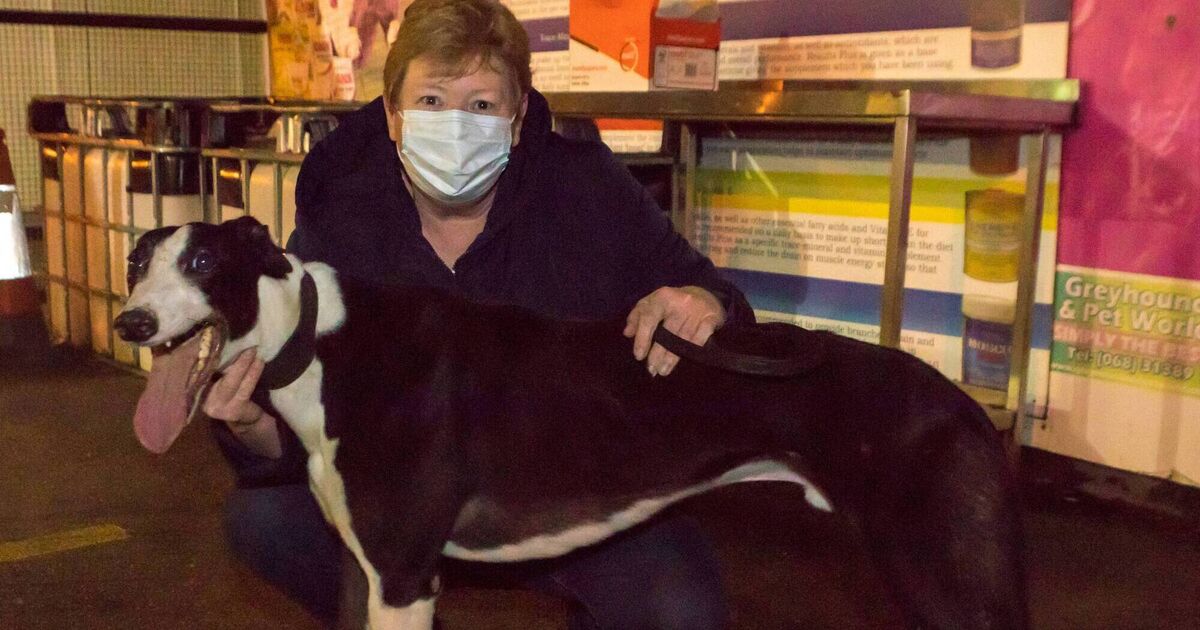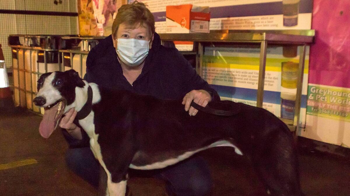 Vigorous Black, Winner of The 1st Denis Linehan Solicitors Unraced Semi-Final at Curraheen Park. Photographed with owner Conny Vandershcheer.
