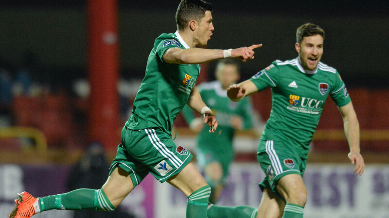 The goal settled City and Sheppard almost doubled the lead, heading over the bar from a Kieran Sadlier corner but they didn’t have long to wait as the second goal arrived in the 11th minute from a penalty. Defender Séamus Sharkey was blown for grappling with Cummins in the area and Sadlier fired beyond the dive of Mitchell Beeney.