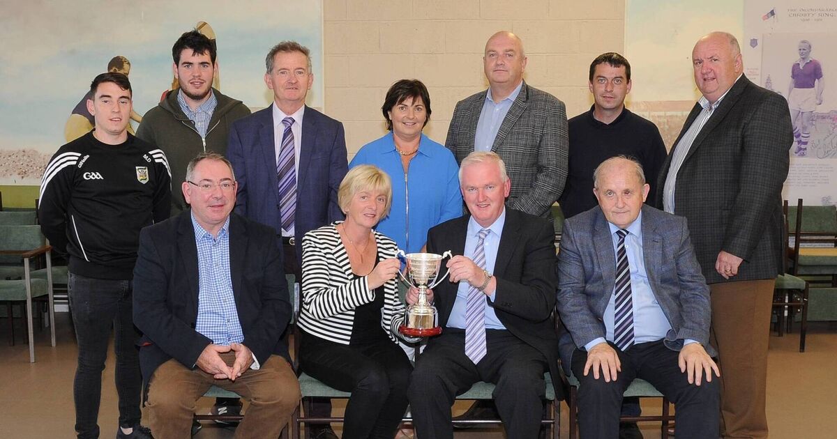 The family of the late Mick Dolan, former chairman of Cork County Board, presented a cup to honour his memory at a function in Páirc Uí Rinn. Front row: Michael Dolan junior, Colette Dolan-Moore presenting the cup to Ger Lane, Pearse Murphy. Back row: Mark Dolan, Eoin Dolan, Richard Murphy, Niamh Dolan, Diarmuid O’Donovan, Donal Leahy, Noel O’Callaghan.