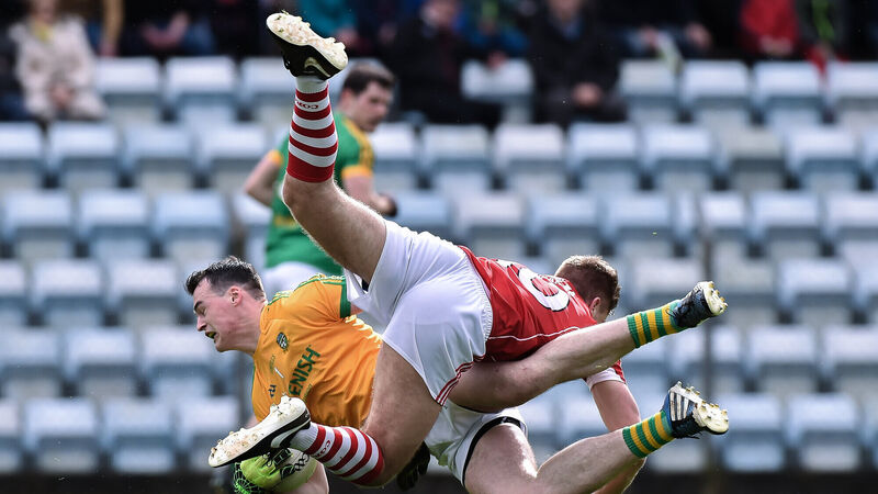 Graham Reilly was in attack on his own against four Cork defenders at one stage but got a shot for a point off as nobody made the call to close him down. An extra man was created down the middle to pop a ball in for a runner from deep, Donal Keogan, one-v-one with Ken O’Halloran for a goal. Cork simply couldn’t work the ball out of their danger area and they’ll need to find a more reliable strategy for getting ball from the full-back line to their attack than just expecting one defender to beat his man.