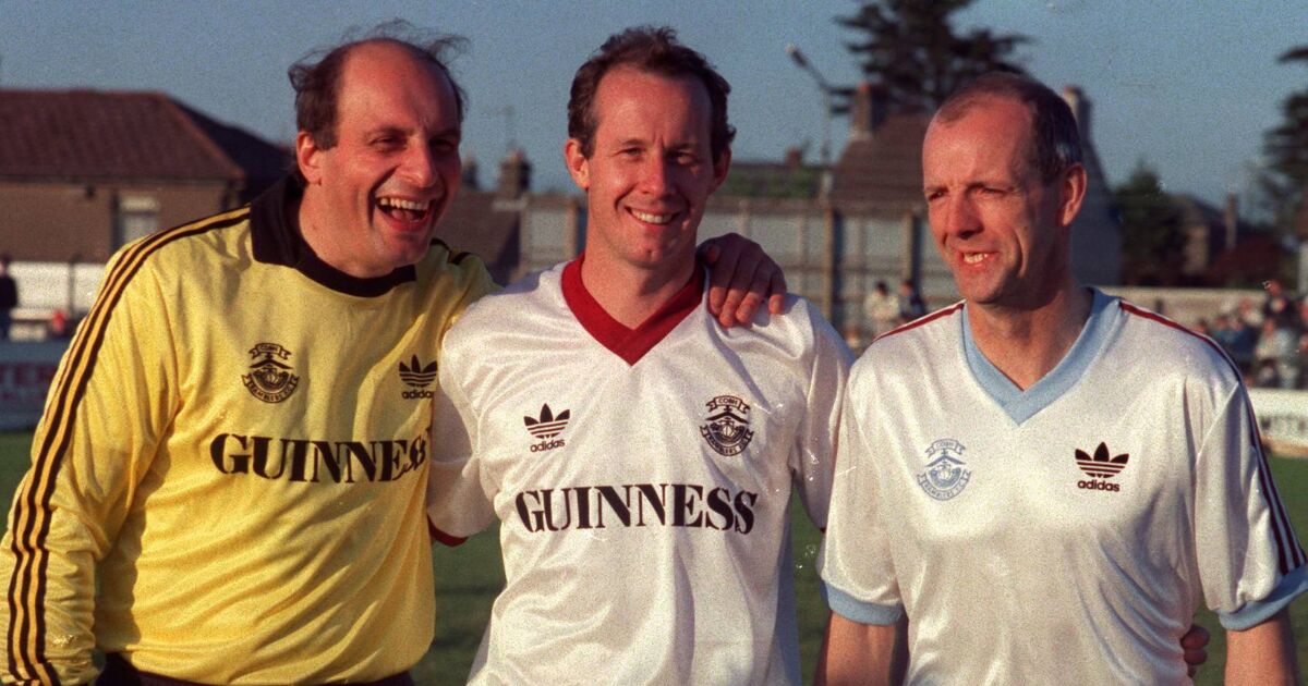 Alec Ludzic, Liam Brady and Miah Dennehy pictured at the Cork City v Cobh Ramblers Testimonial in 1990. Picture: Eddie O'Hare.