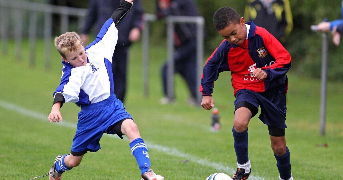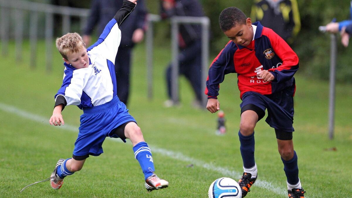Tyreik Wright, Lakewood Athletic, under pressure from Killian Coffey, Leeds, during the U12 National Cup game in 2012. Picture: Jim Coughlan.