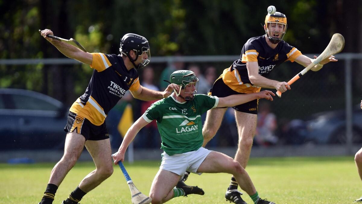 Clyda Rovers' Oliver O'Hanlon and Ray Carey tussle with Harbour Rovers' Stephen Condon in the North Cork JAHC final at Castletownroche. Picture: Eddie O'Hare