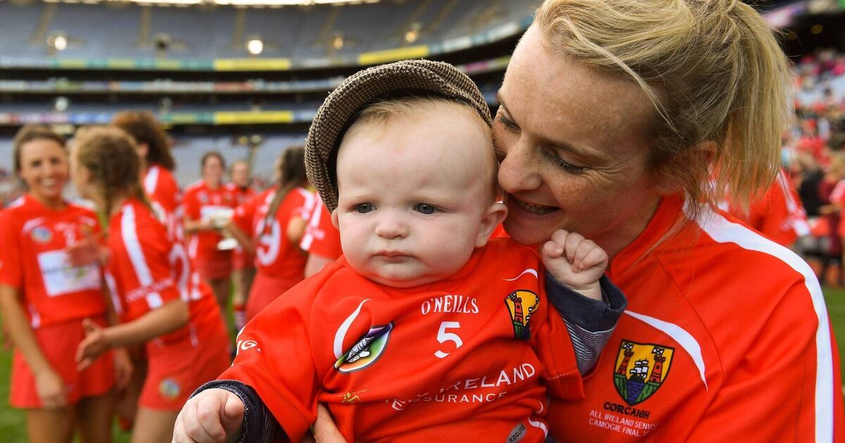Briege Corkery of Cork celebrates with her son Tadhg Scannell, then aged five months, after winning the 2018 camogie All-Ireland. Picture: Piaras Ó Mídheach/Sportsfile