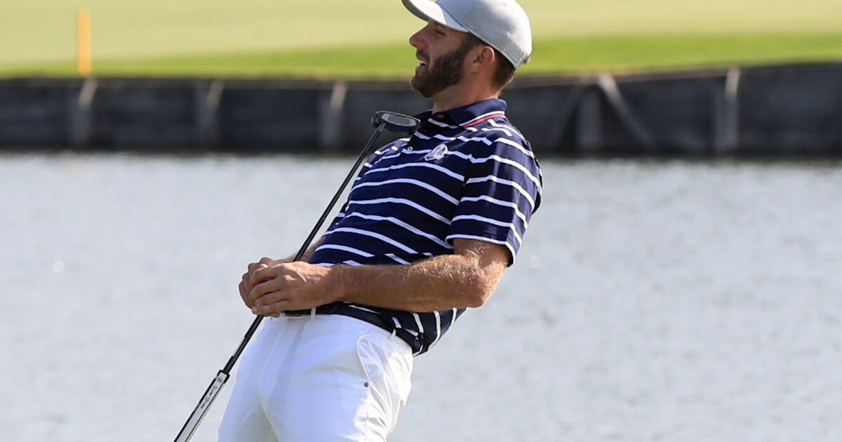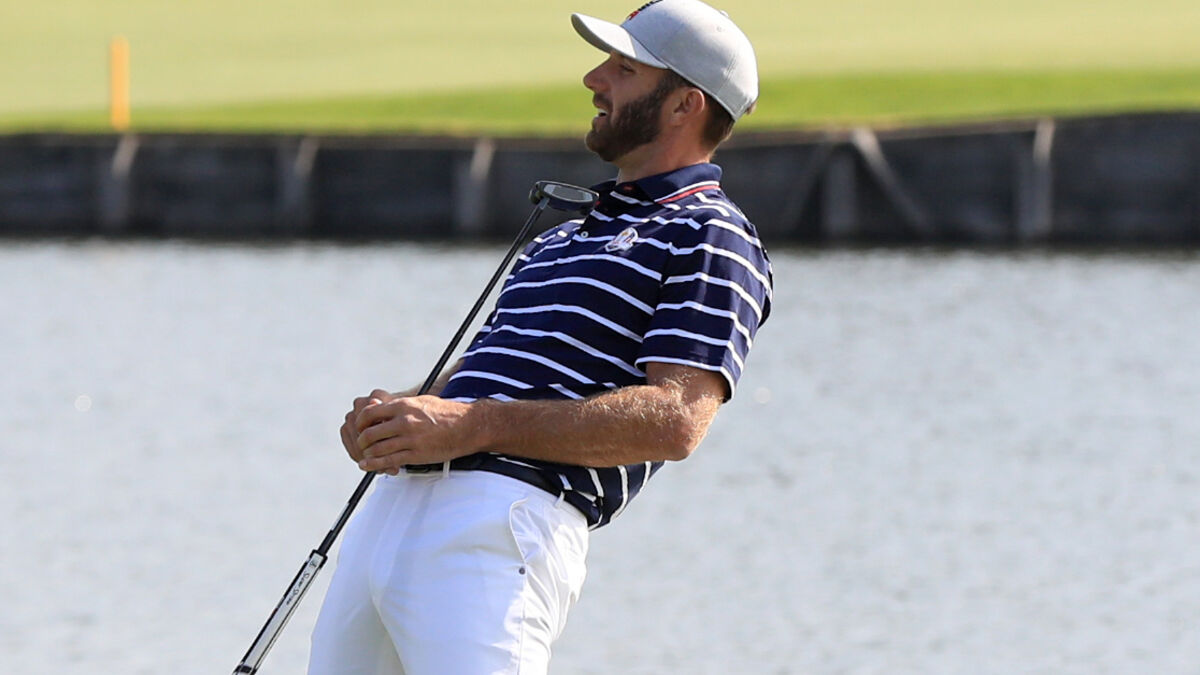 Dustin Johnson reacts to a missed putt