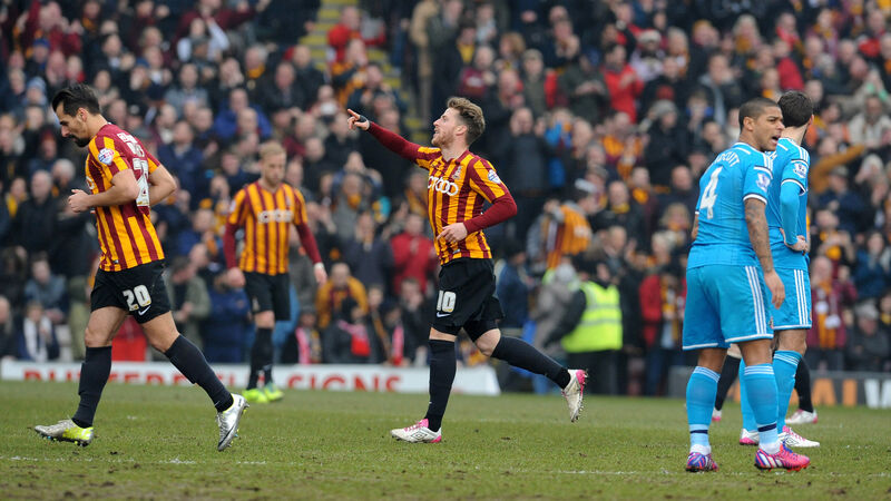 Bradford City's Billy Clarke celebrates after scoring during the FA Cup match at the Valley Parade.