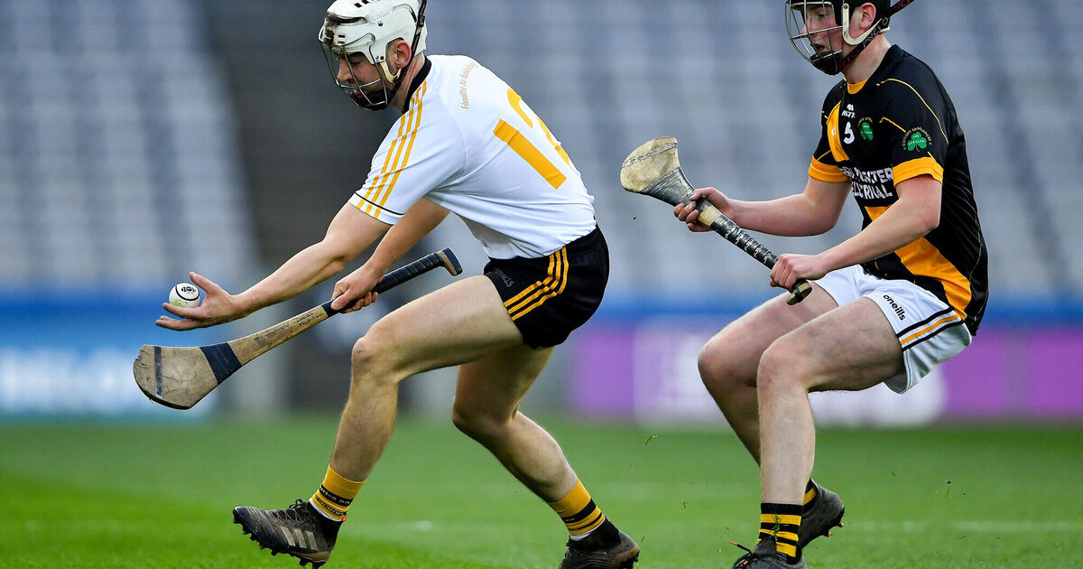 Daniel Moynihan of Russell Rovers in action against Darren Cuddihy of Conahy Shamrocks during the AIB GAA Hurling All-Ireland Junior Club Championship Final between Russell Rovers and Conahy Shamrocks at Croke Park in Dublin. Photo by Piaras Ó Mídheach/Sportsfile