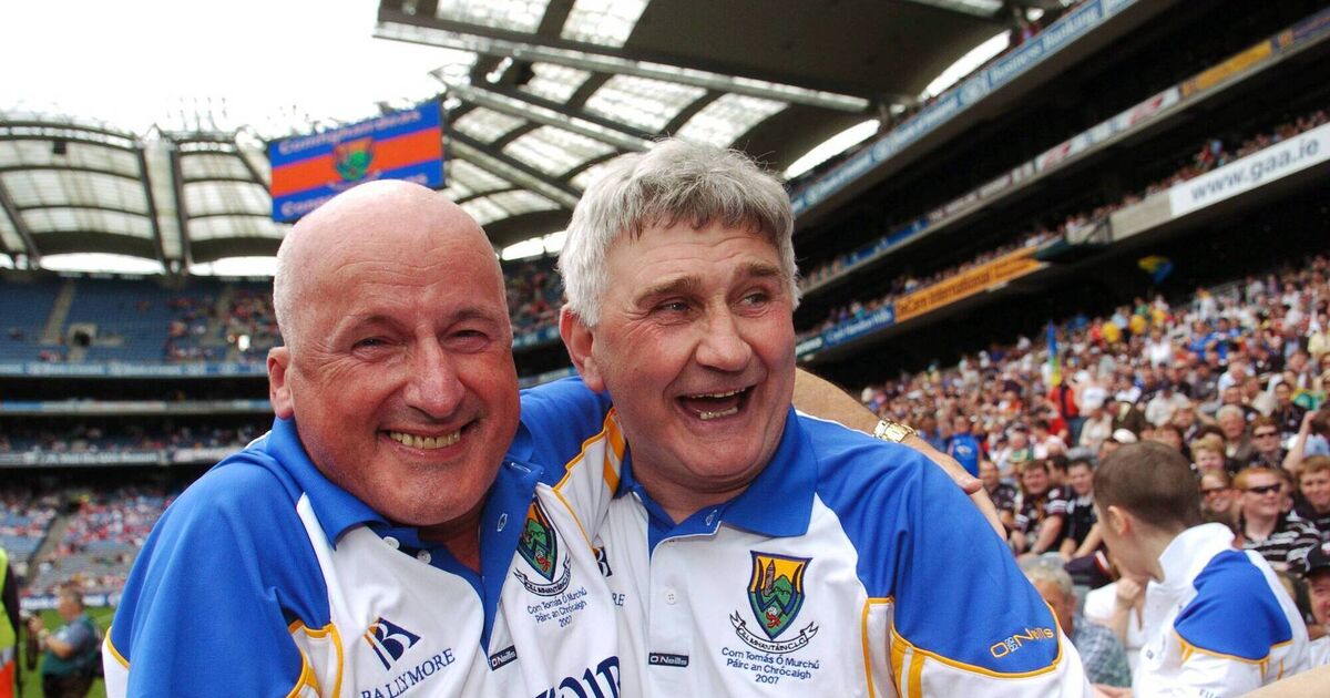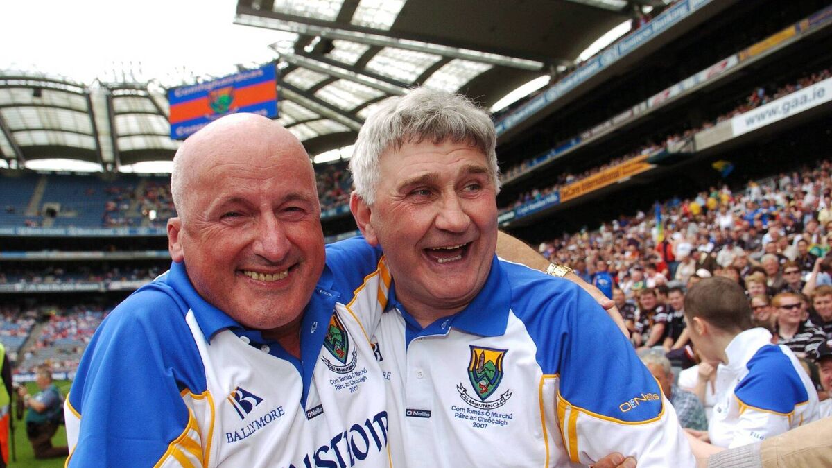 Wicklow's Arthur French and Mick O'Dwyer celebrate winning the Tommy Murphy Cip final against Antrim in 2007. Photo: Brian Lawless / SPORTSFILE