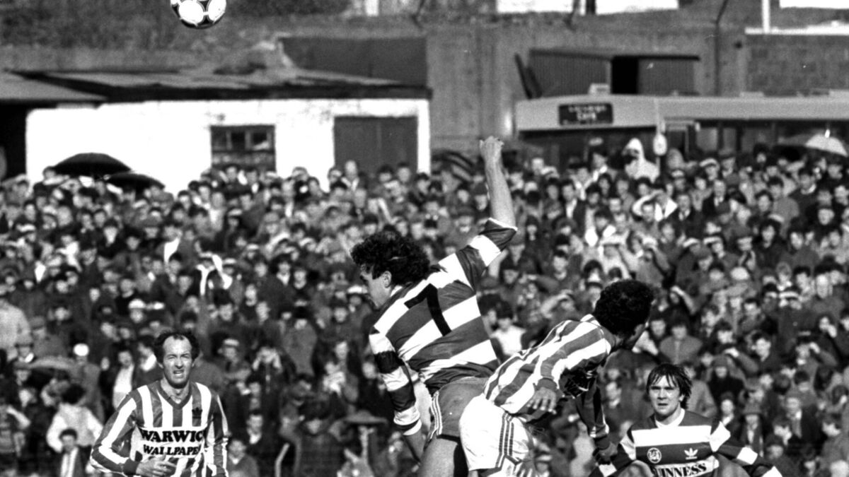 Action from Cork City v Derry City in 1986 at Flower Lodge.