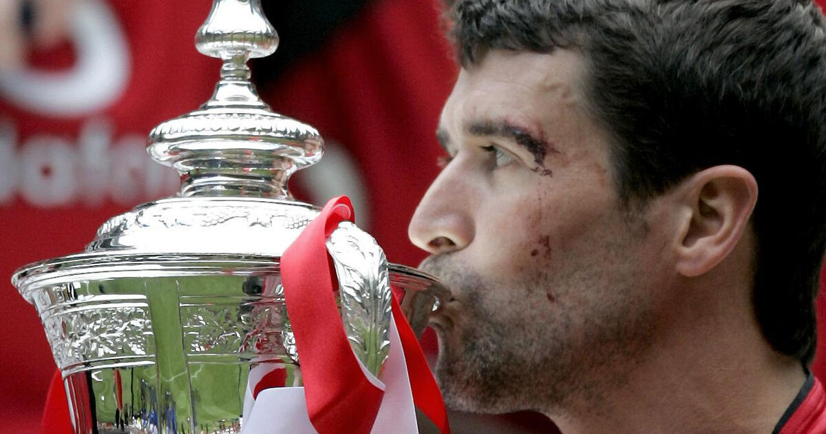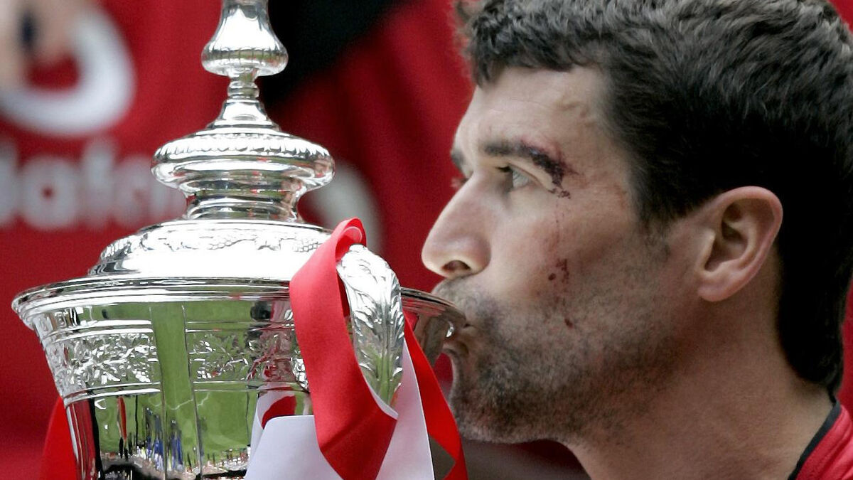 Manchester United's Roy Keane lifts the FA Cup trophy after his last and fourth success, in 2004 against Milwall. He played in six finals in total.
